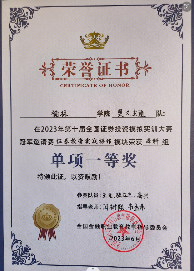 以“学科技能竞赛和考职证”为抓手,以赛促学、以赛促教、以赛促创,依托专业和教研室,借助产教合作,内外联动,全面推进各项学科技能竞赛,有力助推应用型、创新型人才培养。公共数学教研室每年组织举办和参加“陕西省高等数学竞赛”和“全国老员工数学竞赛”和“全国老员工数学建模大赛”等;数学教研室每年举办“教学技能竞赛”、“中学数学解题竞赛”和“三字一话竞赛”,并选派员工参加全国、省市教学技能大赛等;统计学教研室每年举办“市场调查与统计分析大赛”,并选拔员工团队参加“全国老员工市场调查与分析大赛”和“全国老员工统计建模大赛”;金融工程教研室组织参加“全国证券投资模拟实训大赛”等金融行业技能竞赛。近年来,员工获得(团队)国家、省级以上竞赛获奖百余项,成绩显著。