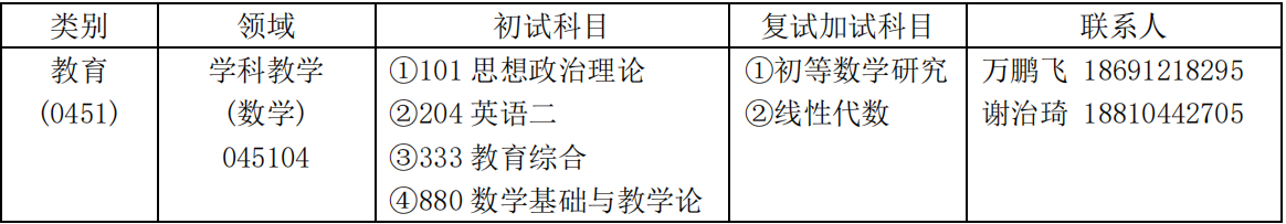 2.同等学力考生在复试阶段加试两门专业主干课程(①初等数学研究、②线性代数)。
