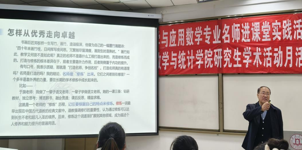 刘老师指导各位学科教学(数学)研究生,想要从优秀走向卓越,关键是要把握三点,即方向、能量(阅读)和行动,同时也要饱含激情、活力、恒心,做一名阳光型的新时代教师,用良好的心态,健康的人格,宽阔的视野,丰高的智慧,守住心灵的宁静,演择教育的神彩。