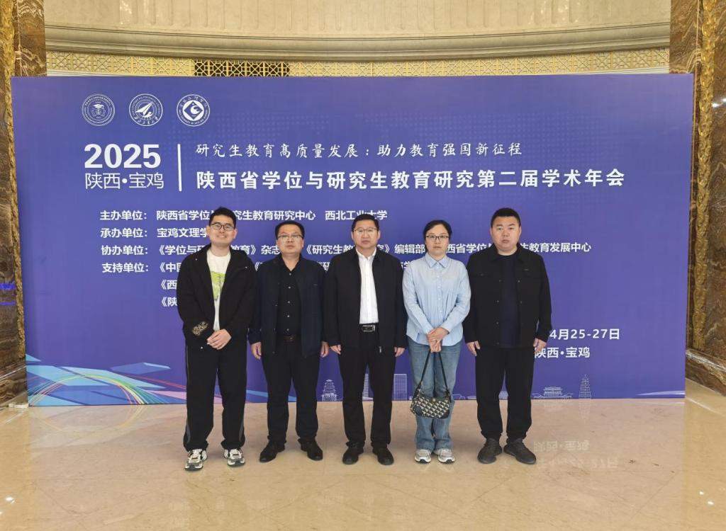 2025年4月26日至27日,由陕西省学位与研究生教育研究中心与西北工业大学联合主办的陕西省学位与研究生教育研究第二届学术年会在宝鸡文理学院高新校区成功举办。本次年会以“研究生教育高质量发展,助力教育强国新征程”为主题,吸引了来自省内外300余名高校的专家学者、师生代表参加。公司经理闫树熙、副经理马永刚、数学教研室主任兼研究生班主任张巧卫、青年博士张学耀及刘政龙老师一行五人参会,学习交流研究生教育培养新策略与新路径。